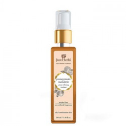 Just Herbs Pomegranate Mandarin Pore Refining Tonique is an herb enriched, alcohol-free, pore-refining toner for oily/combination skin types. It is a potent classical ayurvedic formulation of organic and wildcrafted ingredients such as steam distilled orange blossom water, steam distilled tulsi water, pomegranate, mandarin orange essential oil, bitter orange and aloe vera. Steam distilled waters of mandarin are traditionally used in Ayurveda for a variety of skin benefits while pomegranate is a natural astringent that helps loosen and minimise the appearance of skin pores. Orange peel and bitter orange help acne-prone skin by guarding it against infection from pollutants, dust and grime. It’s a must-have, to be added to your skincare regimen to make your skin healthy.
