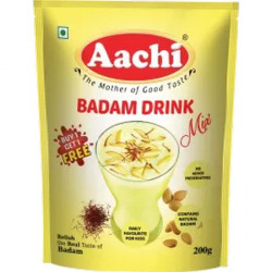 Aachi's Badam Drink Mix is a Health Drink liked by all from children to adults. It contains Milk Solid , Cashews, Almonds, Cardamom , Saffron and sugar.
