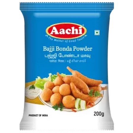 Bajji : Take Aachi Bajji Bonda mix, add required quantity of water to make a paste. Dip the sliced vegetables (onion, brinjal, cauliflower, potato) in the mix and fry in medium heat oil. Now tasty Aachi Bajji is ready-to-serve hot.
