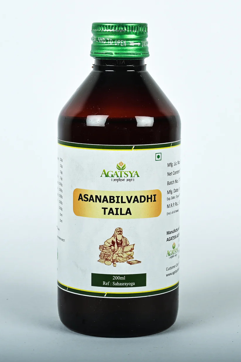 Agatsya Asanabilvadhi Taila:Agatsya Asanabilvadi Taila is an excellent blend used for external application in Ayurveda. It is used in the management of diseases pertaining to head, eyes, ears and various neurological disorders.
