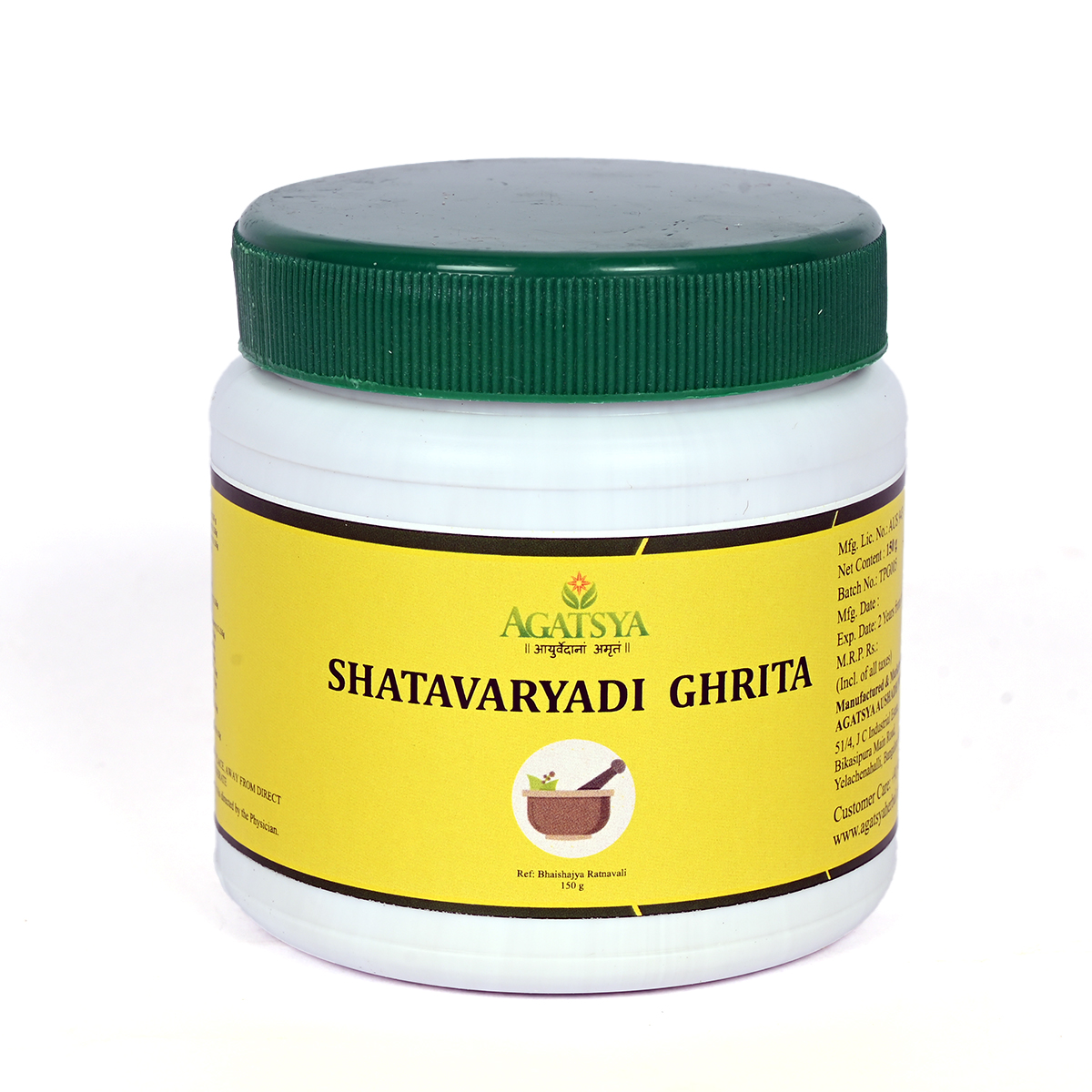 Agatsya Shatavaryadi Ghrita is a medicated herbal ghee prepared following the authentic methods mentioned in the classics including Cow ghee, decoction and pastes of various herbs. The ghee is heated for certain hours along with prescribed herbs so as to imbibe the medicinal benefits accordingly.