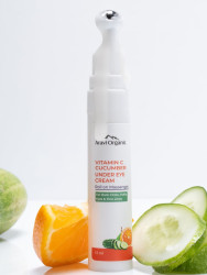 Under Eye Cream roll-on massager with Cucumber and Vitamin C by Aravi Organic Helps to nourish the skin, keep it moisturized and prevent dullness. They help fight the puffiness every morning and brighten eyes. They also soften fine lines and make the skin under your eyes look youthful. The light, silky texture of most eye gels also works well under makeup.
