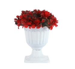 Artificial Flowers and Pedestal Pot Planter (Red) :