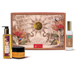 The Essence of Essentials kit includes a revitalizing Face Wash, refreshing Rose Water, and a nourishing Day Cream. This trio is designed to cleanse, hydrate, and protect your skin, providing a simple yet effective routine for a naturally radiant complexion.