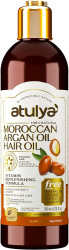 Atulya Moroccan Argan Oil Hair Oil softens and restores rough hair by deeply hydrating them. It also aids in the restoration of hair strength when it has lost its luster and quality due to the excessive use of heat-styling products. It helps improve the overall hair texture, calms irritated scalp and makes hair strong.