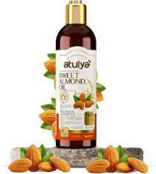 atulya Sweet Almond Oil is enriched with protein, Vitamin E, Omega-9, and fatty acids that help manages scalp infection inflammation, makes hair long safe, mend wounds & stretch marks, reduces fine lines other signs of aging, nourishes hair smoothed hair cuticles, penetrates hair shaft hydrates hair, is great for healing brittle nails, and supports hair growth.