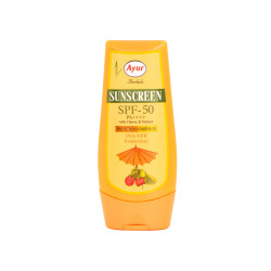 Ayur Herbals Sunscreen Lotion with SPF 50 PA+++ provides active skin cell protection preventing it from darkening, sunburns leading to a fairer and even skin tone. Applying sunscreen on your skin blocks these harmful UVA/UVB rays from penetrating deep into the skin. This sunscreen can be applied in every season to shield your skin from the harsh rays of the sun. It can prevent blotches and developing signs of ageing such as wrinkles and fine lines making it smooth and supple.