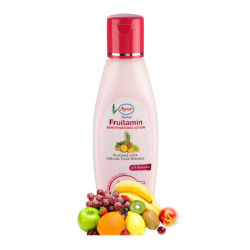 Ayur Herbals Fruitamin Lotion is a lightweight and non-greasy lotion enriched with the goodness of natural fruits and nuts such as Papaya, Grapes, Pineapple, Almonds and Blackberry (Jamun). With five action formulas i.e, essential vitamins, luminous skin, natural moisturizer, enriched with AHA, and fair complexion, this lotion protects your skin against dryness and blemishes providing baby-soft skin. It is an intensive skincare lotion with active fruit busters which remove dead skin revitalizing the youthfulness of your skin giving a soft and nourished skin. As it is rich in enzymes, it lessens facial marks as enhances cell rejuvenation.