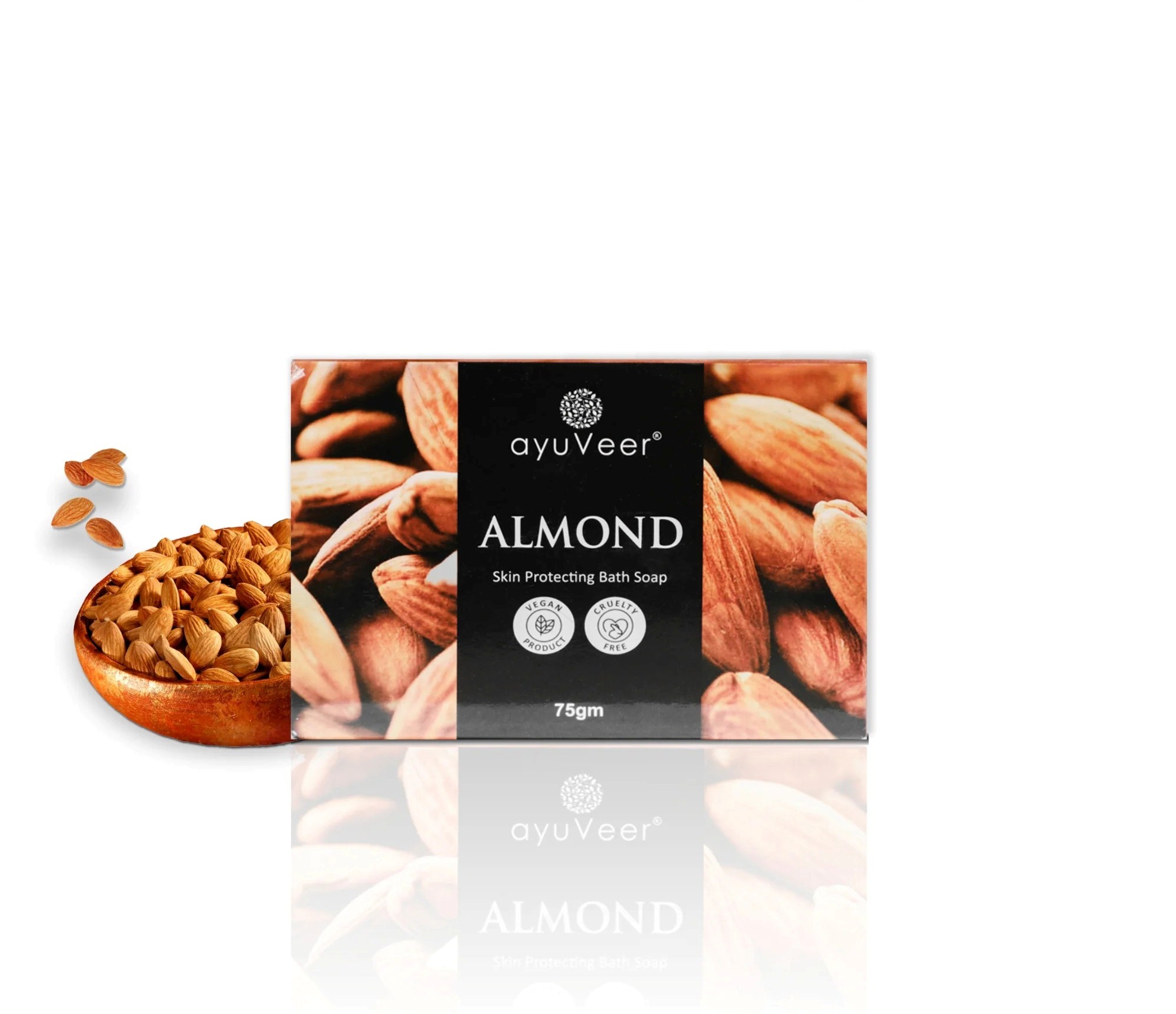 Ayuveer Almond soap keeps your skin cells healthy,protects your skin from UV radiation damage,and helps skin look smooth,soft and free of fine lines.Fatty acid helps to retain moisture and heal chapped and irritated skin