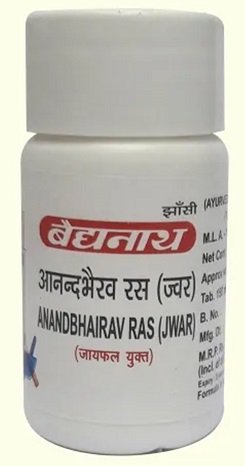 Baidyanath Anand Bhairav Ras is a moist soother which treats fever, influenza, high temperature, typhoid conditions etc