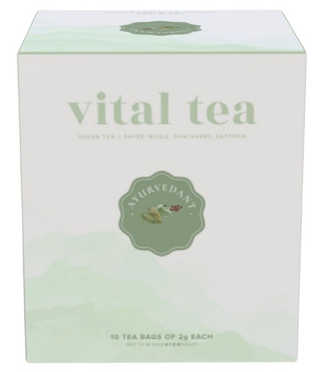 This calming blend of Green Tea, Safed Museli, Shatavari, Saffron and Ashwagandha helpsreduce stress, anxiety, physical weakness and increases vitality.