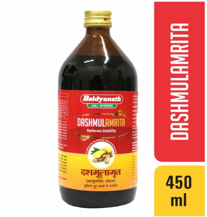 Dashmulamrita is a potent Ayurvedic medicine used to restore energy in both men and women. Dashmulamrita is a Dashmularishta special formulation with key ingredient Dashmool (combination of 10 roots) along with additional valuable herbs like varahikand, safedjeera, sonth, kachur, ajwain and pippalimula helps to relieve pain, inflammation increase appetite, improves digestion and immunity. Specially helps in recovering post-partum delivery to ensure optimum health in women.