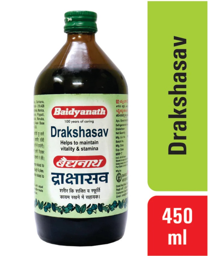 The Sanskrit word “Draksha” means grapes and “Asava” means distillate or extract. Drakshasav is a traditional Ayurvedic tonic prepared by fermentation method containing self-generated alcohol. It is beneficial for maladies such as digestive impairment, respiratory problems and weakness and exhaustion. It calms vata and pitta doshas.
