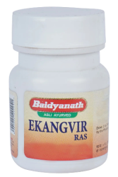 Ekangveer Ras is well known herbomineral Ayurvedic medicine for its ability to boost immune system and help a patient overcome generalized weakness and debility. Ekangavira is also found to be very useful in various types of chronic as well as acute diseases. This immune system booster is beneficial for the treatment of various types of fevers. This also builds up immunity within the body . it is a herbal medicine for infections. Ekangavira benefits in a number of diseases resulted from Vata Dosha as the most common of them paralysis whether it may be hemiplegia or paraplegia. Is an excellent remedy for facial paralysis and then greatly boost immune system.