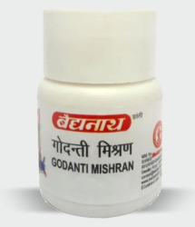 Baidyanath (Jhansi) Godanti Mishran Tablet is an ayurvedic medicine that is primarily used for the treatment of fever and body pain. The key ingredients of Baidyanath Godanti Mishran are camphor, pipli, godanti bhasma and shring bhasma. The correct dosage of Baidyanath Godanti Mishran depends on the patient's age, gender, and medical history.
