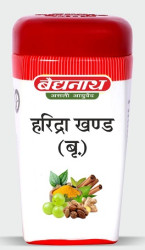 Haridrakhand contains turmeric (Haldi) that has anti-allergic effect. The formulation works better as compared to turmeric powder alone. It helps stopping sneezing and reducing nasal congestion and postnasal drip. In hay fever, it should be given in dosage of 1 teaspoon twice daily with warm water.