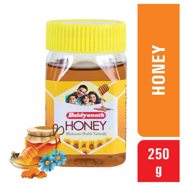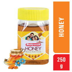 Baidyanath Honey is a pure and natural honey rich in carbohydrates, proteins, amino acids, vitamins, minerals, antioxidants, flavonoids and various enzymes. Prepared by highly effective technique to make sure that it retains its antiseptic, antimicrobial, anti inflammatory, anti allergic and antioxidant properties.
