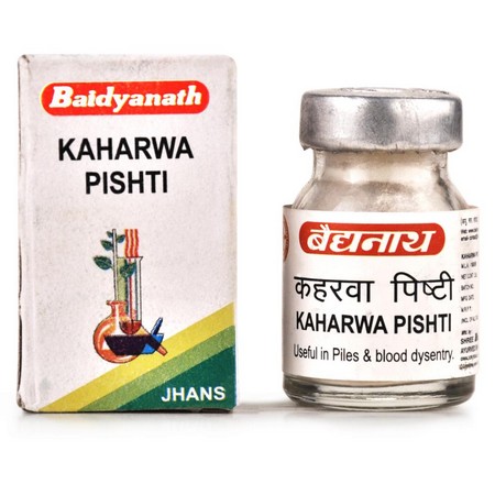 Kaharva Pishti is beneficial in heat disorders, dysentery, rectal bleeding, diarrhoea, excessive uterine bleeding, heavy menstruation and inflammatory diseases of abdomen.