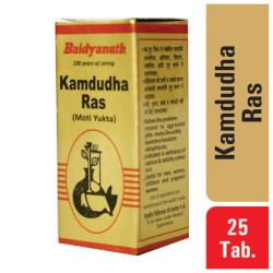 Kamdudha Ras is a classical Ayurvedic medicine enriched with Moti bhasma (Pearl) used as antacid and alterative. Indicated in hyperacidity, excessive heat, convalescence and weakness. Advised to take the medicine under medical supervision.