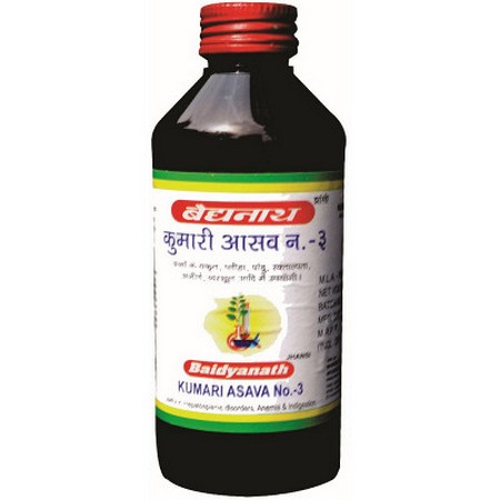 Baidyanath Kumari Asava No.3 is a liquid ayurvedic medicine which is useful in gastritis, urinary tract disorders etc.