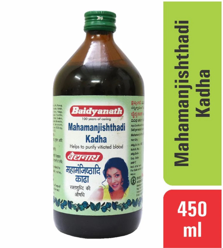 Mahamanjishtadi Kadha is a Classical Ayurvedic preparation with a decoction of 44 botanical herbs, is an excellent remedy for skin diseases and oozing boils, acne and pimples, skin rashes, redness and inflammation. It acts as antioxidant and helps to detoxify the body.