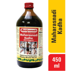 Maharasnadi Syrup is a decoction of 30 potent botanical herbs, a well known ayurvedic medicine most effective in relieving joint pain. It combines one of the world famous herb Rasna (Pluchea lanceolata) for knee pain with other traditional herbs which helps in reducing stiffness of joints and strengthen the nerves. Rasna is a dried leaf used in vitiated conditions of Kapha and Vata that helps in reducing inflammation and also relaxes muscles.