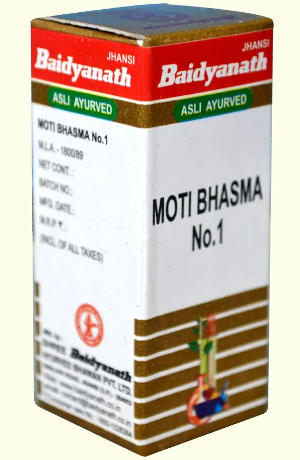 Baidyanath Moti Bhasma No.1 is an ayurvedic remedy useful in treating a number of problems. It has antioxidant, antacid, anti stress, anti depressant and muscle relaxant properties. It is a natural supplement for calcium which strengthens joints, bones and muscles and provides sufficient functionality to nerves, bones and cells. It takes care of all vital functionalities in the body. Its natural composition of pearl and other essential natural ingredients makes it absolutely safe to use. It has no adverse effect on health and is considered to be beneficial for children, pregnant and lactating mothers as it is a rich source of calcium.