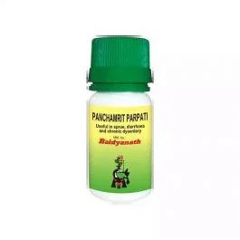 In Ayurveda term Parpati (means brittle) implies to a specific method of preparing medicinal formulations which disintegrates and gets absorbed in small intestine region and not in stomach. These medicines are used to treat grahni related problems and low appetite. Panchamrut Parpati is such medicine containing Parad and Gandhak mixture (mostly Kajjali or the black sulphide of mercury) along with Lauh, abhrak and Tamra Bhasma.