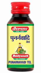 Baidyanath (Jhansi) Punarnavadi Tel is a herbal medicine used in oedema treatment. It improves blood circulation, relieves inflammation and exerts protective effects on the heart, kidneys, and liver. It helps to balance the fluid accumulation in cells, tissues, or serous cavities. Therefore, it can be used in all types of diseases, which result in abnormal accumulation in the body. It acts as a pain reliever and anti-inflammatory without any known side effects.