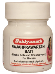 Baidyanath Rajahprawartini Bati is an ayurvedic medicine that promotes women’s health. Its main effects appear on uterus and ovaries. It is likely to stimulate the ovulation and corrects the ovarian functions. It also promotes menstrual discharge due to its emmenagogue action. In addition, it helps overcome amenorrhea, oligomenorrhea, dysmenorrhea associated with light menstruation or scanty periods and backache during menstruation. It is beneficial when the patient feels outflow obstruction during menstruation.