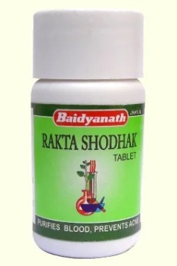 Baidyanath Raktashodhak Bati is a traditional ayurvedic formulation for the purification of the blood and fortification of the immune system. It carefully blends 9 herbs according to the principles of ayurveda to naturally scavenge toxins and free radicals from the blood and liver, and thereby strengthen the immune system and improve the quality of the skin. The quality of the skin is dependent upon the quality of the blood and strength of the liver, acne, psoriasis.