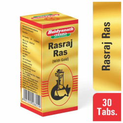 Rasraj Ras is a classical Ayurvedic Medicine with herbomineral ingredients in tablet form, traditionally known to treat neuromuscular conditions. Gold-enriched Rasraj Ras serves as a nervine tonic and immune booster. To be taken under medical supervision.