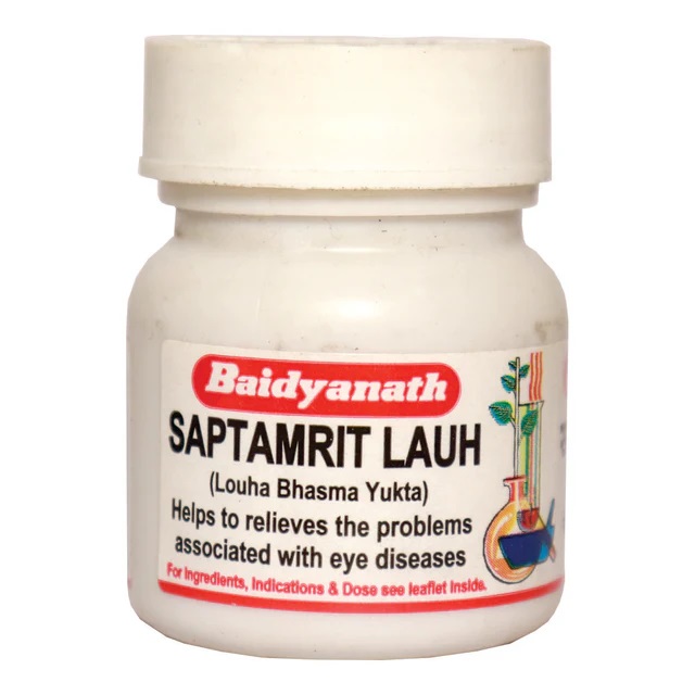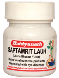 Baidyanath (Jhansi) Saptamrit Lauh Tablet is made with iron bhasma that helps treat ophthalmic related disorders. It is also helpful in hair fall, gastritis, and abdominal colic.