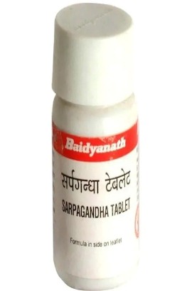 Baidyanath Sarpgandha Tablet is an ayurvedic medication made from sarpagandha churna. It is directed to individuals suffering from high blood pressure, depression, and sleeplessness. Sarpagandha is also used to cure snake bites and remove toxins from the body.