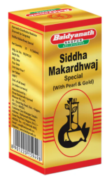 Siddha Makardhwaj is a classical Ayurvedic formulation contains blend of makardhwaj, swarna vanga, swarna bhasma (gold), javitri (Nutmeg) and moti bhasma (Pearl) which helps to boost immunity naturally and maintain vitality and stamina.