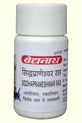 Siddha Praneshwar Ras is an Ayurvedic medicine in tablet or powder form. It is used in the treatment of fever associated with diarrhoea, indigestion etc. This medicine contains heavy metal ingredients, hence should only be taken under strict medical supervision.