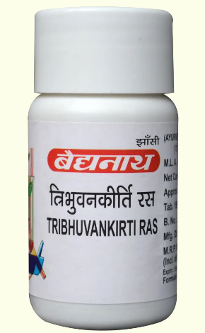 Tribhuvan Kirti Ras is an Ayurvedic medicine in tablet form.