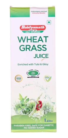 Immunity Booster: Baidyanath Wheat Grass Juice is made from purest form of organically grown wheatgrass, known as a superfood and is power packed with essential nutrients which help enhance weakened immune systems. It is loaded with Vitamin A, C, E, K and B-complex, which are known as natural immunity boosters. The extensive combination of vitamins and nutrients, like iron, calcium, magnesium, and protein makes wheatgrass a natural choice for overall health and wellness.