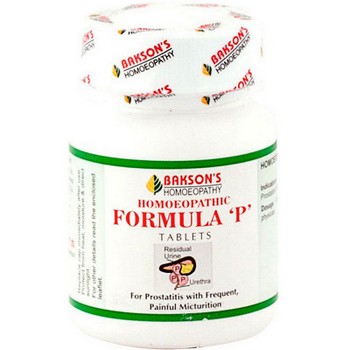 Homoeopathic Formula 'P' Tablets is a combination of several clinically tried potentized homoeopathic medicines which give relief in problems of Prostate, thereby avoiding unnecessary surgery. The medicines, in microdoses, promote normal functioning of gland without side effects. It is used for painful and frequent urination.