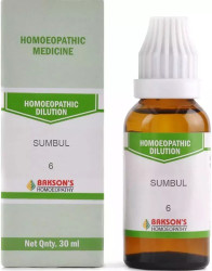 Bakson's Homoeopathy Sumbul Dilution 6 Baksons Sumbul Dilution 200 is a homoeopathic medicine that helps manage sleeplessness, sneezing, belching, thick mucus in the throat and nose and contact swelling in the throat Key Ingredients: Sumbul Dilution Key Benefits: