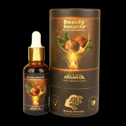 Beauty Secrets magical Argan oil is very rare and precious, contains three times more essential fatty acids than olive oil, rich in Omega-3, Omega-6, squalane (a precursor of the anti-aging hormone DHEA), vitamin A and tocopherols (vitamin E) produced from the kernels of the Argan tree (Argania Spinosa).