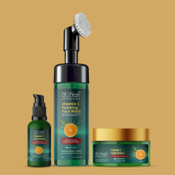 Vitamin C is a powerful antioxidant that brightens the skin and combats free radicals . This happy night pack paired together promotes deep moisturisation and collagen production while you sleep. The inbuilt brush deeply buffs out dirt from skin followed by smooth and thin application of serum that restores and stimulates the production of collagen.The natural ingredients like VIT C,SAFFRON and ALOEVERA in this lightly formulated Vit C NIGHT CREAM heals and moisturise skin while you sleep.