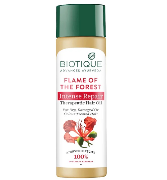 This luxurious oil is a blend of flame of the forest flowers and extracts of hibiscus to promote healthy hair shine and body.