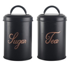 Black Matt Tea and Sugar Stainless Steel Jars Set of 2 :