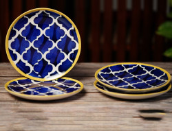 Moraccan Hand Painted Quarter Plates Set of 4 (Blue and Yellow) :