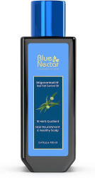 Renew the appearance of weak and damaged hair with Blue Nectar Hairfall Control Oil. With this unique ayurvedic formulation, that consists of a wonderful blend of ancient herbs, you can ensure healthier, smoother-looking hair. Massage the hairfall control oil atleast 30 minutes before shampoo. Post wash, it helps deliver smooth conditioning feel to your hair. Blue Nectar Briganantadi Hairfall Control Oil is especially formulated with traditional wisdom to control hair fall and help fight hair loss. It derives it effectiveness from 10 Ayurvedic herbs like Black Seed Oil/ Kalonji Oil, Malkangani, Bhringraj, Amla etc, which are potent herbs known in Ayurved for their hair fall control action.