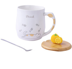 Cat Orange Slice Mug with Lid :