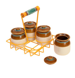 Chatore Barni Set in Yellow Handpainted Metal Stand - Set of 4 :