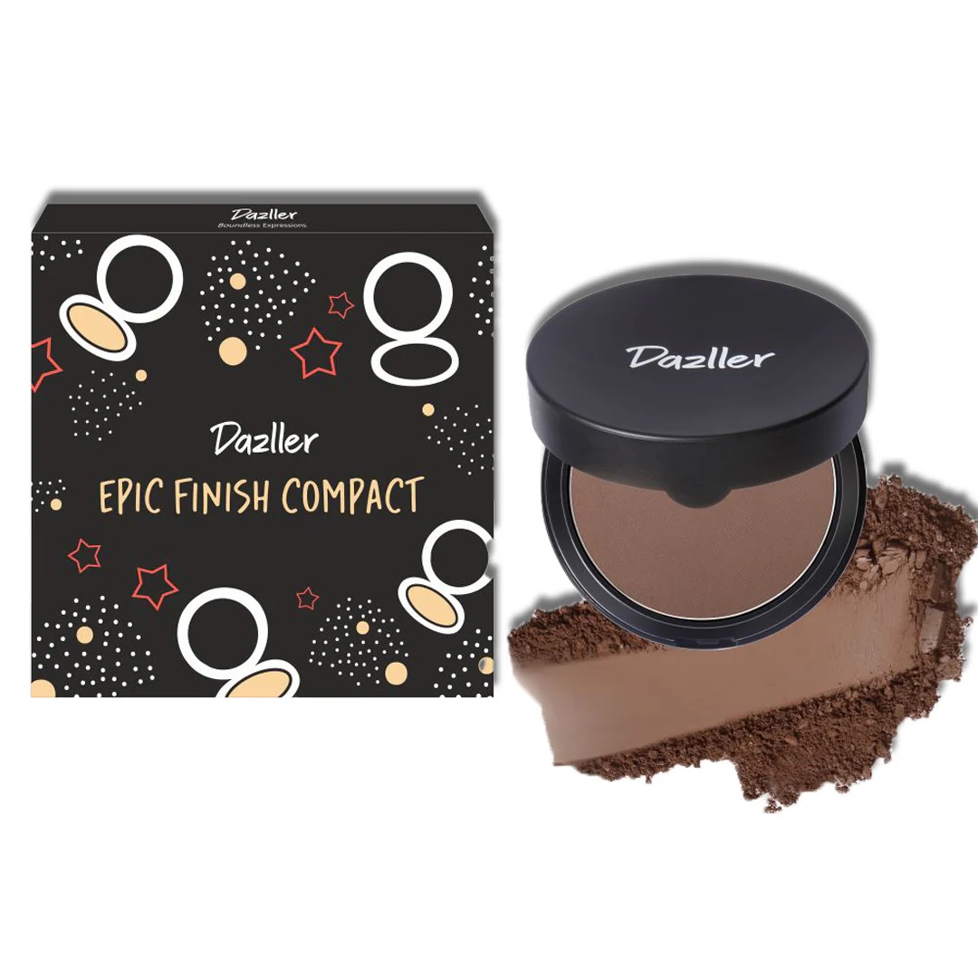 Dazller Epic Finish Compact Powder, your must-have to a flawless, natural matte finish that complements all Indian skin tones. With an impressive range of 16 shades, this compact powder is designed to suit every complexion, ensuring that you find your perfect match. This lightweight powder offers a satin soft texture, that is comfortable with a weightless feel on your skin. It also offers buildable coverage, allowing you to tailor your look from subtle to refined as desired. Dazller Epic Finish Compact Powder boasts effective oil-control properties, helping you maintain a fresh, matte look throughout the day suitable for all skin types. Each compact comes with a soft powder puff for easy application and it blends like a Pro. The compact is enriched with Vitamin E for added skin nourishment and protection. Choose Dazller Epic Finish Compact Powder to gloat over a beautiful matte finish that enhances your natural beauty. Discover your perfect shade and enjoy a pristine complexion that exudes confidence and elegance.