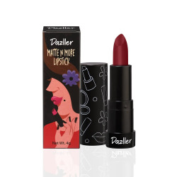 Dazller Matte 'N More lipstick is a top-of-the-line classy lipstick that is available in 50+ stunning shades, offering a wide range of colors to suit every skin tone and occasion. The lipstick is known for its rich and creamy texture that glides smoothly on the lips, providing a flawless matte finish. One of the key features of the Dazller Matte 'N More lipstick is its long-lasting formula that ensures the color stays intact for hours without any smudging, bleeding, or feathering. Additionally, the lipstick is also lightweight, making it easy to wear and carry throughout the day. The Dazller Matte 'N More lipstick is infused with special ingredients such as extracts of Carnauba and Vitamin E. These ingredients work together to provide deep hydration to the lips, keeping them soft and supple all day long. The deep pigmentation of the lipstick ensures that even a single-stroke smooth application provides maximum coverage, making it perfect for those who prefer bold and vibrant shades. Overall, the Dazller Matte 'N More lipstick is a must-have for anyone looking for a long-lasting, hydrating, and highly-pigmented matte lipstick.
